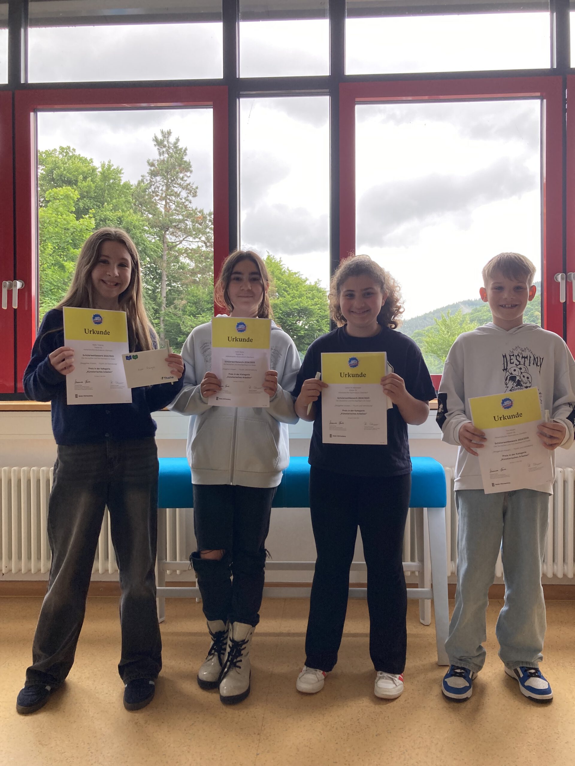 Beim Europäischen Wettbewerb, einem der größten gestalterischen Wettbewerbe weltweit, an welchem dieses Mal über 74000 Jugendliche teilgenommen haben, hat sich die Klasse 7b mit zwei Bereichen befasst. Beim ersten mit dem Titel „Europa – fantastisch gewachsen“ wurde Europa beispielsweise als schützenswerte Fantasie-Pflanze gezeigt, die gleichzeitig für die Vielfalt und Freiheit der Länder Europas steht. Beim zweiten Themenbereich „In Europa unterwegs“ stellten die Bilder eine individuelle Entdeckungsreise durch Orte Europas dar, die die Faszination an verschiedenen Routen, Sehenswürdigkeiten und Begegnungen aufzeigen soll.