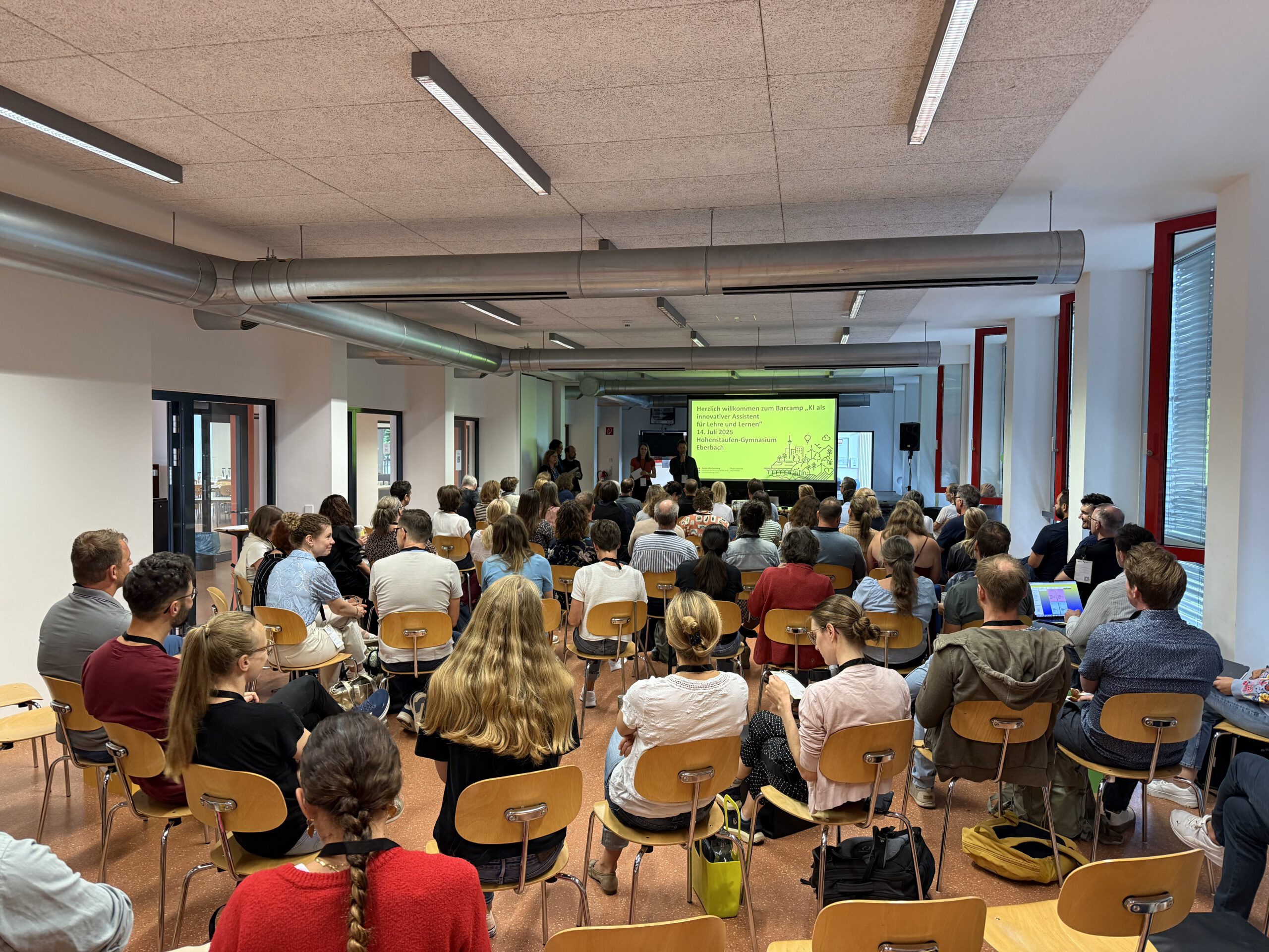 Am 14.07.25 war das HSG Gastgeber einer besonderen Lehrer*innenfortbildung zum hochaktuellen Thema „KI als innovativer Assistent für Lehre und Lernen“ – organisiert vom Zentrum für Schulqualität und Lehrerbildung (ZSL). Mit über 90 Teilnehmenden aus verschiedenen Schulen der Region wurde der Tag zu einer lebendigen Plattform für fachlichen Input, Austausch und kreative Ideenentwicklung. Dabei nahm von Seiten des HSG mehr als die Hälfte des Kollegiums teil, um sich fortzubilden. Zeitgleich waren auch die Schülerinnen und Schüler beim parallel stattfindenden Sporttag bestens versorgt und durften an abwechslungsreichen Stationen ihren Teamgeist und ihr sportliches Geschick unter Beweis stellen.