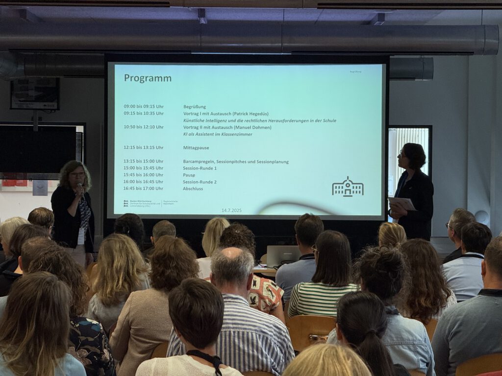 Am Nachmittag stand der kollegiale Austausch im Mittelpunkt: In mehreren Barcamp-Sessions konnten Teilnehmende eigene Themen einbringen oder sich interessierten Runden anschließen – von konkreten Tools und Unterrichtsideen bis hin zu ethischen Fragen und Zukunftsvisionen. Die offene Struktur sorgte für intensive Gespräche, neue Perspektiven und zahlreiche Vernetzungsmöglichkeiten.