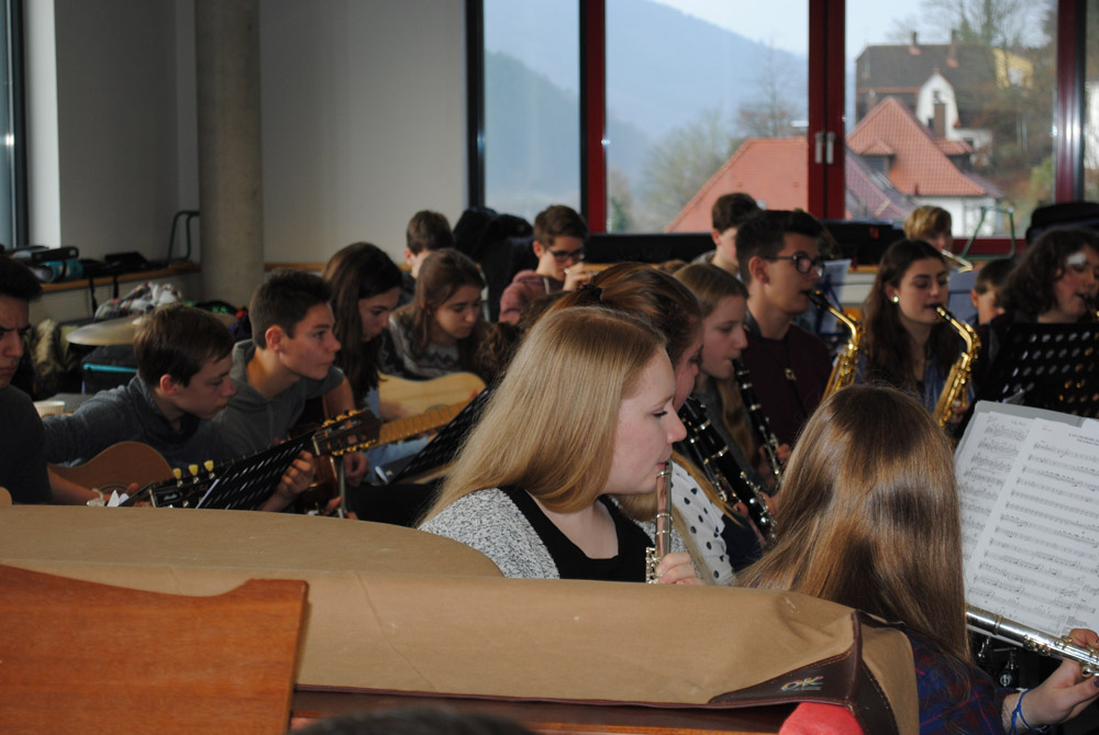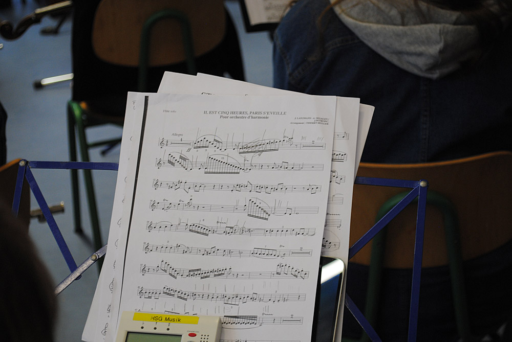 „Aufführungsreif!“ ruft Klaus Wagenleiter strahlend, nachdem der letzte Ton der Probe im Musiksaal 1 erklungen ist. Als musikalischer Leiter und Pianist der SWR Big Band hat er extrem viel Erfahrung mit Profis, zeigt aber auch im Umgang mit Schüler*innen der Klassen 7-12 des HSG ein sehr gutes Händchen. Das Lob am Ende eines konzentrierten und abwechslungsreichen Workshops spiegelt das Ergebnis wieder, das in der kurzen Zeit von 4 Schulstunden gemeinsam mit dem Symphonic-Jazz-Orchestra (Jutta Gewahl) erreicht worden ist. Es war eine wunderbare Gelegenheit einmal einem Jazzmusiker von großem Format nicht nur zu begegnen, sondern real unter ihm zu proben und insbesondere zu lernen.